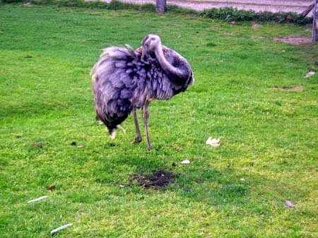 Le Nandou : Rhea americana est nettement plus petit que son cousin Australien qui est l'Emeu. Son poids est de l'ordre de 25 à 30 kg et comme chez l'Emeu son aile n'est pas fonctionnelle mais par contre elle est parfaitement développée et sert de balancier à l'oiseau. Sa zone de distribution est l'Amérique du sud du Nord-Est du Brésil au Centre de l'Argentine. Son espace de prédilection est la pampa et les prairies qui sont situées à proximité de zones marécageuses. |